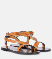 Product Details - Upper: leather - Lining: leather - Sole: leather insole and sole - Toe shape: round open toe - Made in Italy - Includes: shoe box, dust bag - Designer color name: Havana - Item color: brown - Hardware color: antique gold - Closure: buckle-fastening ankle strap - Item number: P01006021 Size & Fit - Fits large to size - we recommend trying one size smaller - French sizes