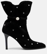 Take bold steps in the Lolya ankle boots from Isabel Marant. Set on 90mm heels, this pointed-toe black pair is crafted from smooth suede and finished with a glimmering embellishment. Product Details - Upper: calf leather (suede) - Lining: sheep leather - Sole: leather insole and sole - Toe shape: pointed toe - Made in Italy - Includes: dust bag, shoe box - Designer color name: Black - Item color: black - Hardware color: silver - Closure: buckle fastening - Item number: P01099885 Size & Fit - True to size - Half sizes please take the next size up - French sizes - 9cm-3.5" heel (size EU 38)