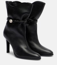 Take bold steps in the Lolya ankle boots from Isabel Marant. Set on 90mm coned heels, this black pair is crafted from buttery soft leather and finished with cord wraps around the silhouette and logo-embossed metal plaques. Product Details - Upper: lamb leather - Lining: sheep leather - Sole: leather insole and sole - Toe shape: pointed toe - Made in Italy - Includes: shoe box, dust bag - Designer color name: Black - Item color: black - Hardware color: silver - Item number: P01099887 Size & Fit - True to size - Half sizes please take the next size up - European sizes - 9cm-3.5" heel (size EU 38)