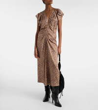 Inspired by Parisian style, each Isabel Marant piece blends refined design with effortless looks for daily life. The Lyndsay midi dress boasts an all-over floral print and gathering at the waistline. Product Details - Material: 65% viscose, 35% silk - Care instructions: dry clean - Made in India - Designer color name: Ochre - Item color: multicolor - Closure: concealed zipped back - Item number: P01133887 Size & Fit - True to size - Cinched waist - Non-stretchy fabric - The model seen in the picture is 178cm-5'10" and wearing a size FR 36