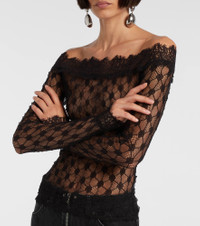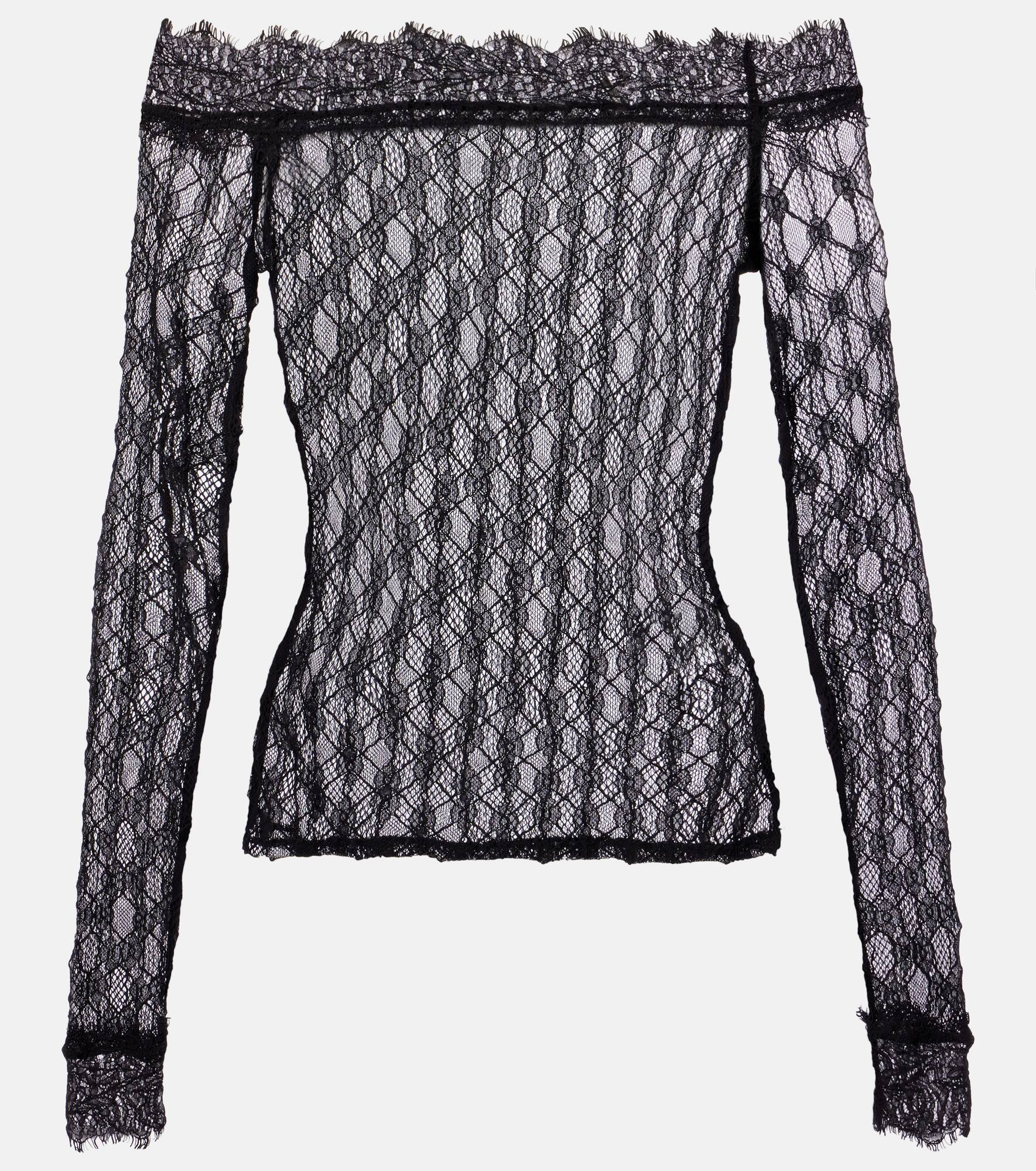Inspired by Parisian style, each Isabel Marant piece blends refined design with effortless looks for daily life. The Marlene top is intricately crafted from sheer, delicate lace into a form-fitting silhouette with an off-shoulder neckline. Product Details - Material: 85% polyamide, 15% elastane - Care instructions: dry clean - Made in Portugal - Designer color name: Black - Item color: black - Material II: 88% polyamide, 12% elastane - Sleeves: long-sleeved - Item number: P01095419 Size & Fit - True to size - Off-the-shoulder - Sheer - Fitted - Stretchy fabric - Slightly cropped - The model seen in the picture is 178cm-5'10" and wearing a size FR 36