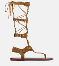 A testament to authentic and effortless Parisian style, each Isabel Marant piece is designed to get you from A to B. The Nensi suede gladiator sandals are secured with buckles and ties around the legs. Product Details - Upper: leather (suede) - Lining: leather - Sole: leather insole and sole - Toe shape: round open toe - Made in Italy - Includes: shoe box, dust bags - Designer color name: Taupe - Item color: green - Closure: buckle fastening, lace-up - Hardware color: gold - Item number: P01046862 Size & Fit - True to size - Half sizes please take the next size down - French sizes - 1,5cm-0.5" heel (size EU 38) - 33cm-13" shaft height (size EU 38)