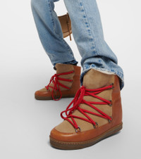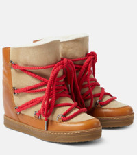 Elevate your winter style with Isabel Marant's Nowles snow boots. Enhanced by a crisp white lining and lacing, the Nowles pair blend fashion and function, making them the perfect choice for chilly days. Product Details - Upper: leather - Lining: shearling - Sole: shearling insole, rubber sole - Toe shape: round toe - Made in Portugal - Includes: shoe box, dust bag - Designer color name: Camel - Item number: P00835699 Size & Fit - True to size - Half sizes please take the next size up - French sizes - 1,5cm-0.5" platform (size EU 38) - 7cm-3" wedge heel (size EU 38)