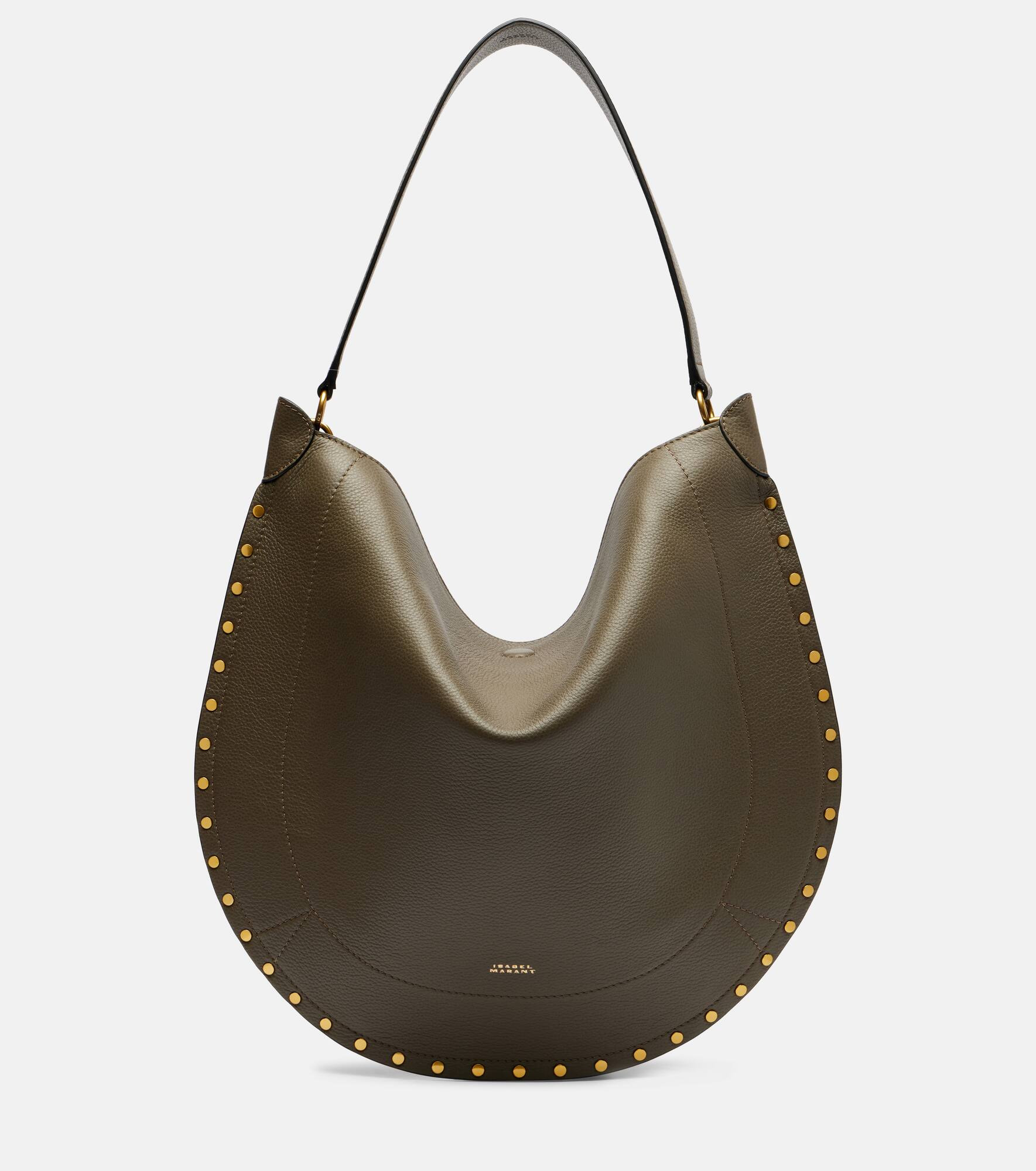 The Oskan shoulder bag from Isabel Marant is made from supple leather and shaped to a slouchy, versatile silhouette. The design features a magnetic fastening and is finished with gleaming studs. Product Details - Material: leather - Lining: cotton - Made in Tunisia - Designer color name: Khaki - Item color: green - Closure: magnetic fastening - Shoulder strap - Detachable zipped pouch - Hardware color: gold - Item number: P01038660 Size & Fit - Height 40cm-15.5" - Max. width 43cm-17" - Clutch height 15cm-6" - Clutch width 21cm-8.5"