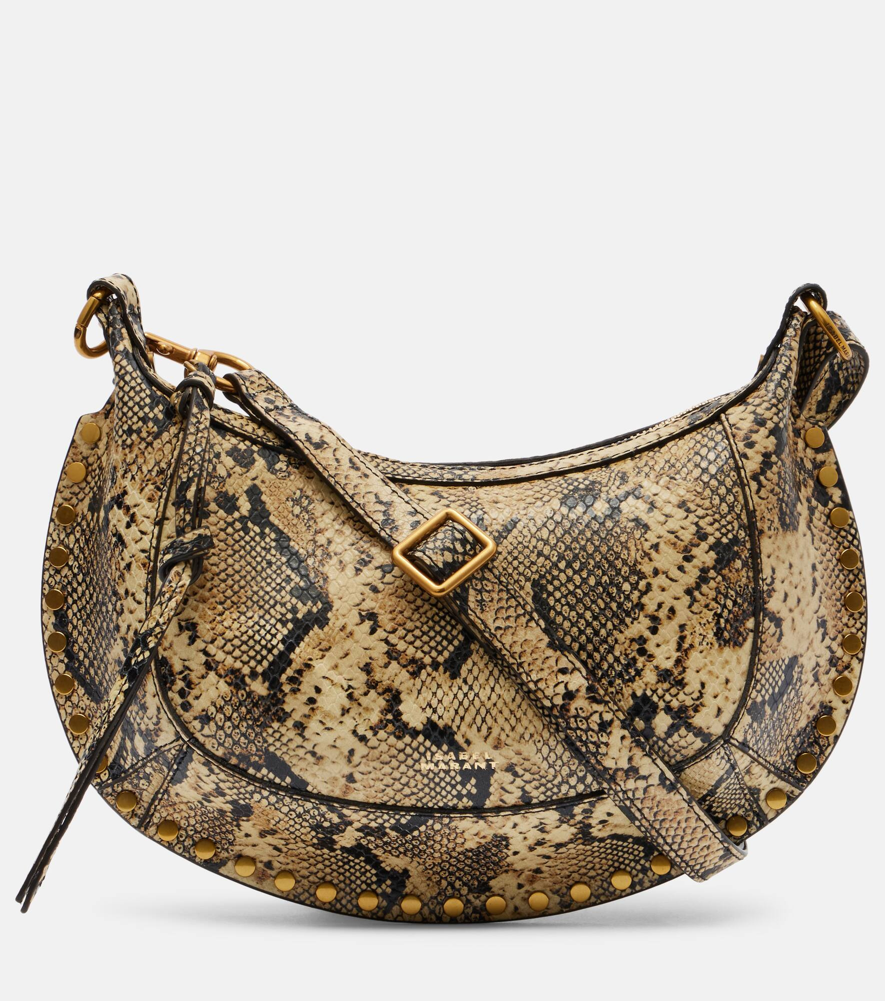 The Oskan Moon shoulder bag from Isabel Marant is made from supple python-effect leather in a striking curved silhouette with stud embellishments on the outer edge. It features a detachable and adjustable strap. Product Details - Material: calf leather - Lining: fabric - Made in Tunisia - Designer color name: Beige - Item color: beige, black - Hardware color: brass - Closure: zipped top - Adjustable shoulder strap - Internal details: card slot, single compartment - Includes: dust bag - Item number: P01038661 Size & Fit - Width 27cm-10.5" - Max. height 20cm-8" - Max. depth 8,5cm-3.5" - Min. length shoulder strap 52cm-20.5" - Max. length shoulder strap 90cm-35.5"