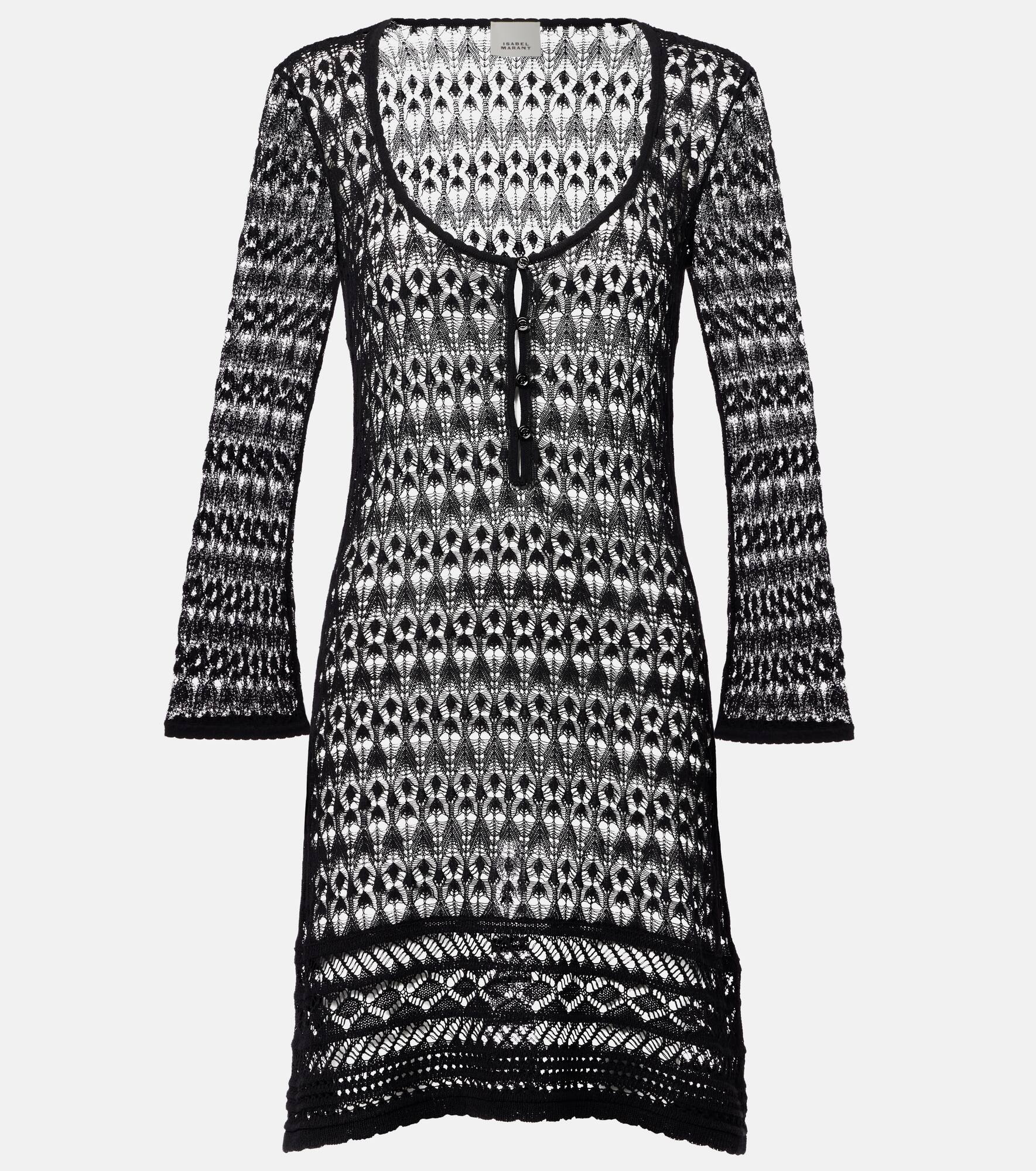 The Pia minidress from Isabel Marant features an open crochet design, complemented by a round neckline and buttoned front. The silhouette is completed with long sleeves and ribbed finishes for an effortless look. Product Details - Material: 83% viscose, 17% polyester - Care instructions: hand wash - Made in China - Designer color name: Black - Item color: black - Item number: P01062232 Size & Fit - True to size - Semi-sheer - Cinched waist - Slightly stretchy fabric - The model seen in the picture is 178cm-5'10" and wearing a size FR 36