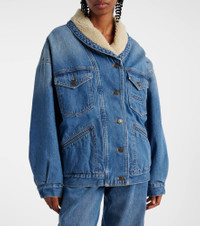 The Pimia jacket from Isabel Marant deserves a spot in your everyday staples rotation. Made from cotton denim, this style is complete with multiple pockets, plush faux shearling collar and lining, and a button at the hem for an adjustable fit. Product Details - Material: 100% cotton - Care instructions: dry clean - Made in Morocco - Designer color name: Blue - Item color: blue - Cuff: buttoned - Closure: buttoned front - Pockets: welt pockets, angled chest pockets - Sleeve lining: 100% cotton - Lining: 54% acrylic, 46% polyester - Pocket lining: 65% polyester, 35% cotton - Filling: 100% polyester - Item number: P01074424 Size & Fit - True to size - Dropped shoulders - Oversized - Non-stretchy fabric - Falls below the hip - The model seen in the picture is 178cm-5'10" and wearing a size FR 36
