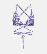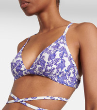 The Solange bikini top from Isabel Marant is designed with extra-long self-ties that wrap around the waist. This triangle design offers minimal coverage and comes in royal blue. Product Details - Closure: self-ties - Lining: fully lined, 18% elastane, 82% polyester - Material: 78% polyamide, 22% elastane - Designer color name: Royal Blue - Care instructions: hand wash - Made in Tunisia - Item number: P00777815 Size & Fit - True to size - The model seen in the picture is 178cm-5'10", cup size B, and wearing a size FR 36 - Unpadded Top
