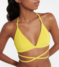 The Solange bikini top from Isabel Marant is designed with extra long self-ties that wrap around the waist. This triangle design offers minimal coverage and comes in yellow. Product Details - Closure: self-ties - Material: 28% elastane, 72% polyamide - Care instructions: hand wash - Designer color name: Yellow - Made in Tunisia - Item number: P00777829 Size & Fit - True to size - The model seen in the picture is 178cm-5'10", cup size B, and wearing a size FR 36 - Unpadded Top