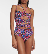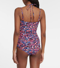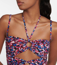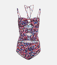Isabel Marant brings brand-signature florals to beach attire with the Stiza swimsuit. The one-piece silhouette boasts three O-rings and cutouts on the front, which guide the eye to the halterneck straps. Product Details - Material: 78% polyamide, 22% elastane - Care instructions: hand wash - Made in Tunisia - Designer color name: Pink /Blue - Item number: P00777812 Size & Fit - True to size - Medium-cut leg - The model seen in the picture is 178cm-5'10", cup size B, and wearing a size FR 36 - Unpadded Top