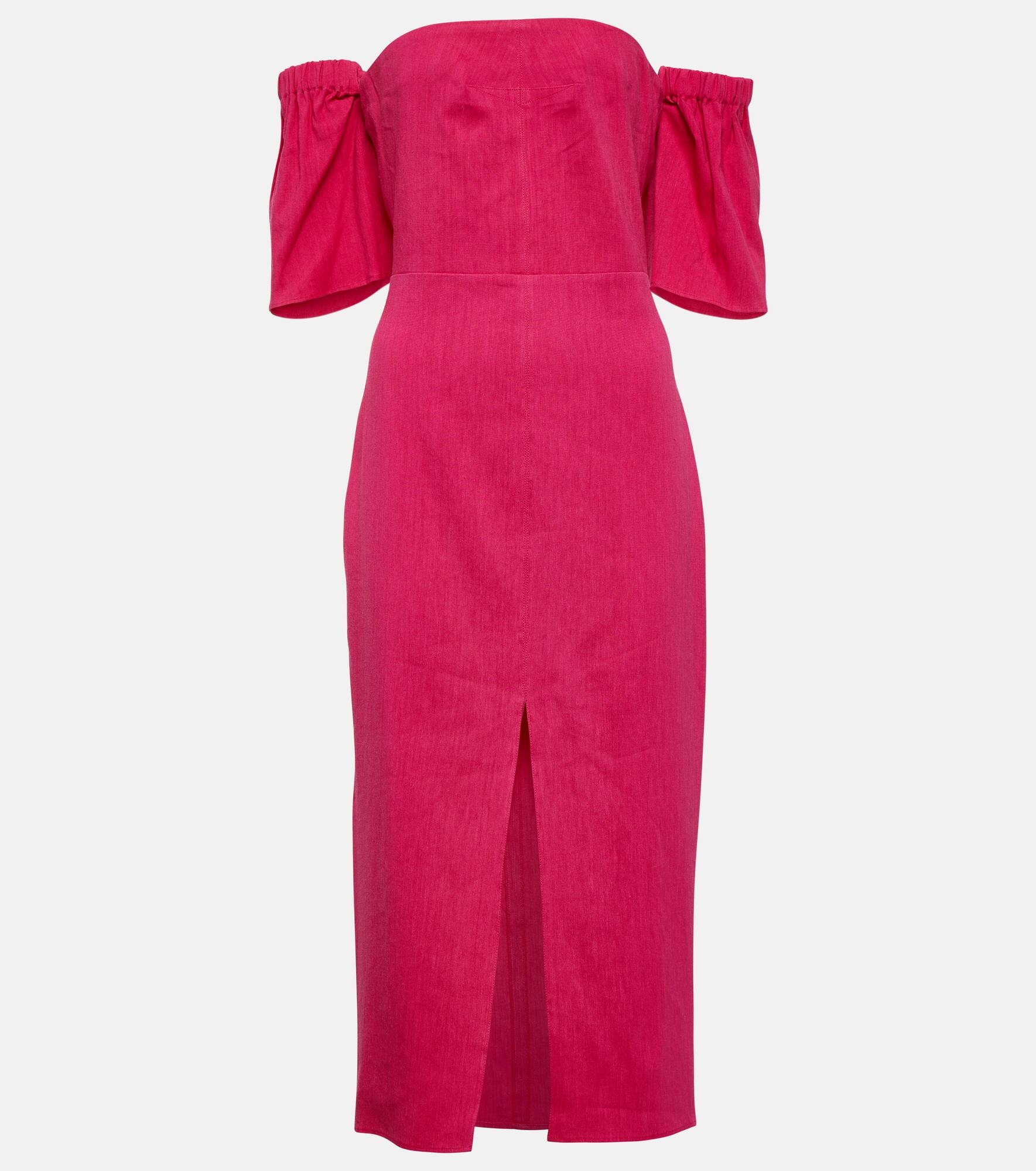 Hit refresh on your vacation wardrobe with Isabel Marant's Stony midi dress. Made from a hemp blend, the vibrant style features an alluring off-shoulder silhouette and has a front slit. Product Details - Material: 3% elastane, 39% viscose, 58% hemp - Made in Portugal - Care instructions: dry clean - Designer color name: Fuchsia - Item number: P00841049 Size & Fit - True to size - Off-the-shoulder - Cinched waist - Mid-weight material - The model seen in the picture is 178cm-5'10" and wearing a size FR 36