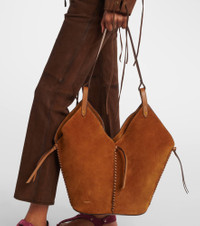 A testament to authentic and effortless Parisian style, each Isabel Marant piece is designed to get you from A to B. The Tampa shoulder bag is crafted from supple suede and shaped to a geometric silhouette finished with tonal leather trims. Product Details - Material: leather - Lining: fabric - Made in Tunisia - Designer color name: Cognac - Item color: brown - Leather shoulder strap - Internal details: internal zipped pocket - Hardware color: gold - Item number: P01018991 Size & Fit - Min. height 24cm-9.5" - Max. height 37cm-14.5" - Max. width 43cm-17" - Max. depth 18cm-7" - Length shoulder strap 50cm-19.5"