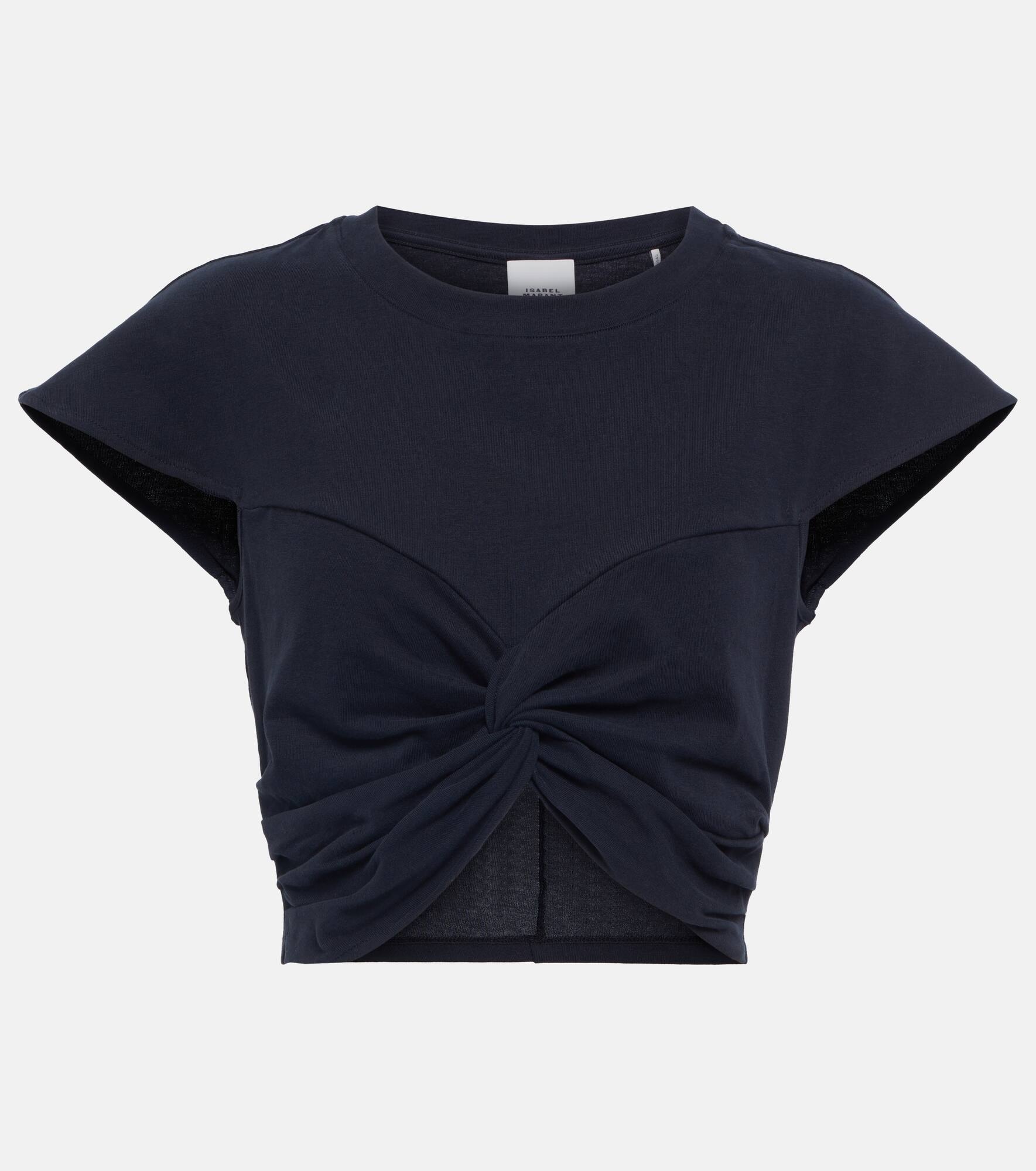 The Zineae crop top from Isabel Marant is made from a breathable cotton jersey. Here in black, it features cap sleeves and a knot detail in the center. Product Details - Care instructions: machine wash at 30 degrees - Made in Portugal - Material: 100% cotton - Designer color name: Black - Item number: P00763116 Size & Fit - True to size - Cinched waist - Lightweight material - Cropped - The model seen in the picture is 178cm-5'10" and wearing a size XS
