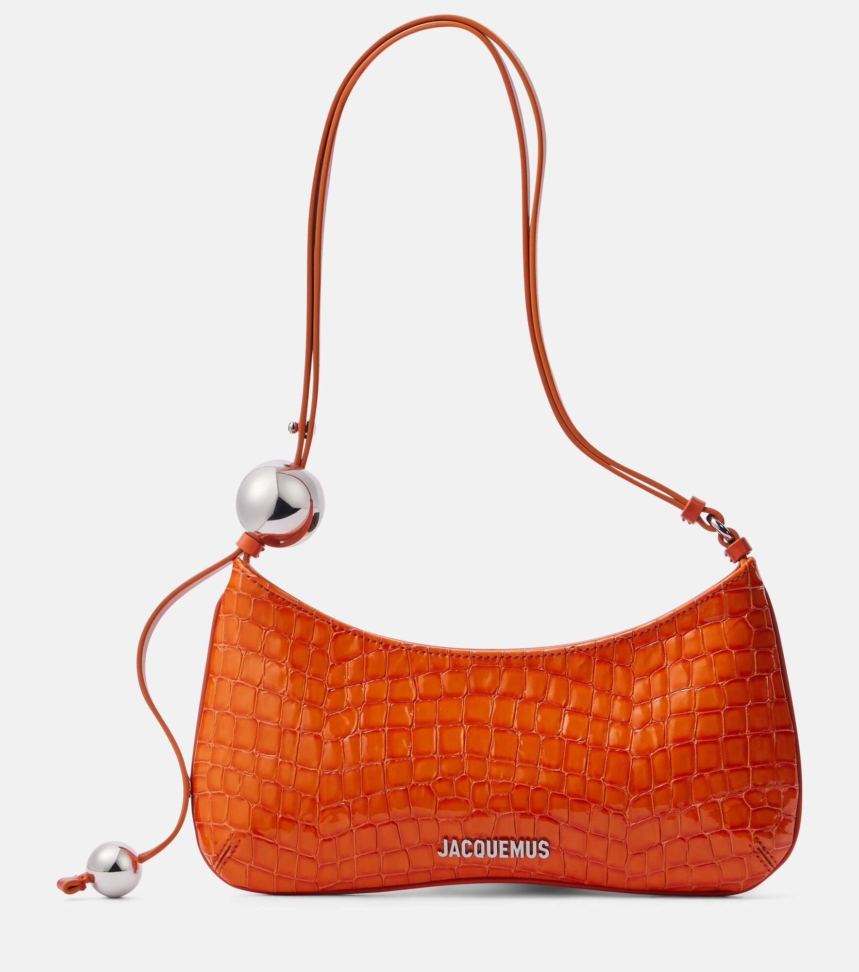 Le Bisou Perle embellished leather-trimmed croc-effect glossed-shell shoulder bag Orange