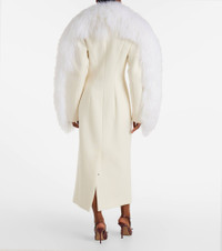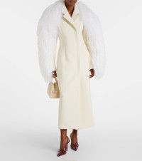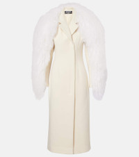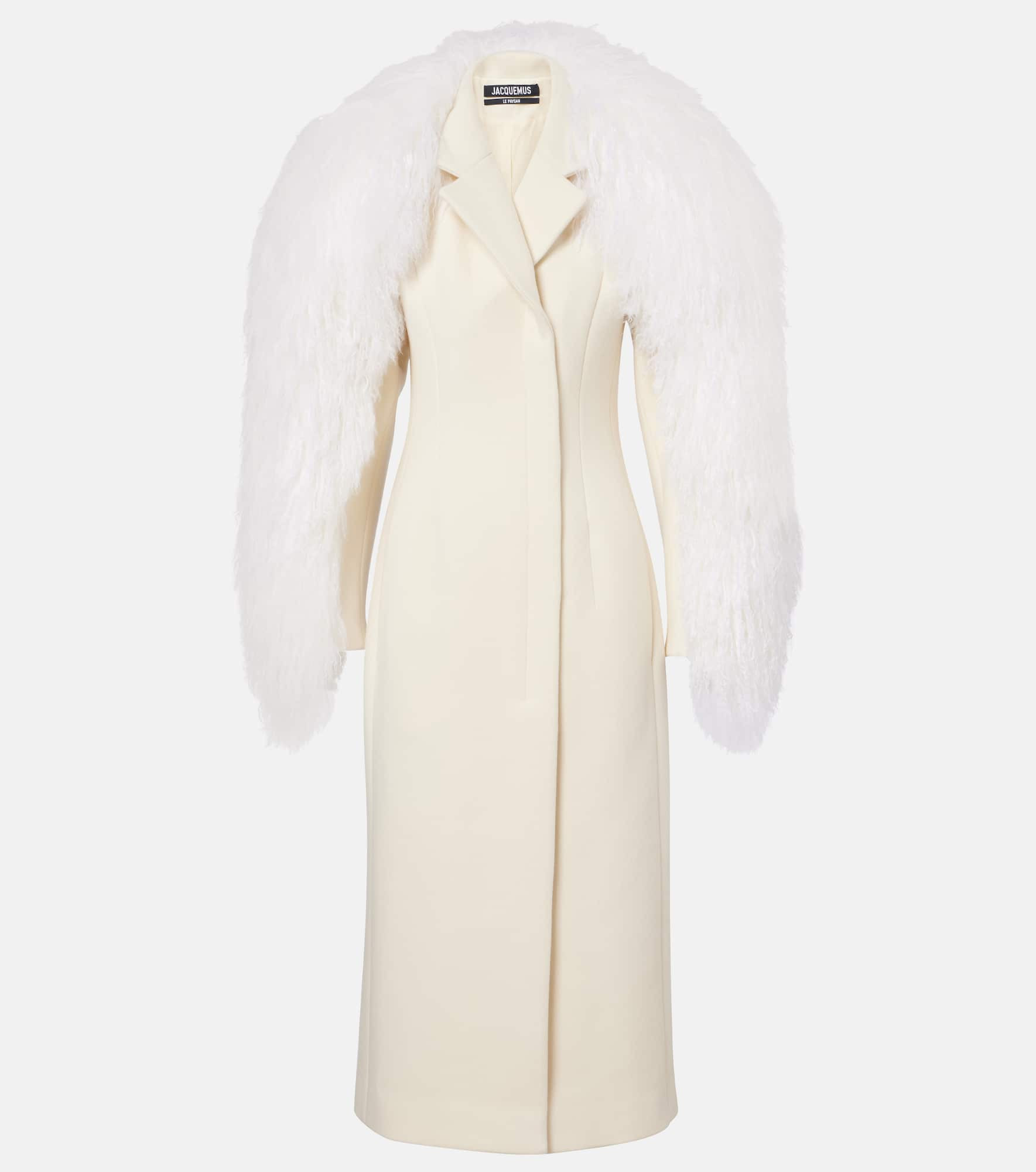 Add buoyant pieces to your outerwear edit with the Boa coat from Jacquemus. Named after the snake-shaped shearling trim framing the design's shoulders, this style is crafted from heavy bonded virgin wool. Product Details - Material: 100% virgin wool - Care instructions: specialist clean - Made in Bulgaria - Designer color name: Off-White - Item color: white - Material II: 100% shearling - Lining: 52% viscose, 48% cotton - Lining II: 55% cotton, 45% polyester - Closure: snap-buttoned front - Long vent - Item number: P01076000 Size & Fit - True to size - Oversized shoulders - Cinched waist - Non-stretchy fabric - The model seen in the picture is 178cm-5'10" and wearing a size FR 36