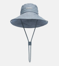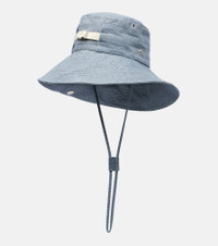 Jacquemus brings a characterful vision of French fashion to the design of every new collection. Made from denim, the Bob De-Nimes bucket hat features adjustable straps, a silver-toned rendition of the brand's logo at the front, and sides that can be folded up and fastened by snap buttons. Product Details - Material: 100% cotton - Care instructions: hand wash - Made in Bulgaria - Designer color name: Blue - Item color: blue - Lining: 100% cotton - Closure: drawstring - Item number: P01079930 Size & Fit - Width of brim 10cm-4" - Circumference size 56= 56cm-22"