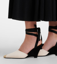 Jacquemus brings a characterful vision of French fashion to the design of every new collection. Made from sturdy canvas, these elegant wedges feature embroidered pointed toes and long grosgrain ribbons to tie around the ankles. Product Details - Upper: fabric - Lining: leather - Sole: leather insole, leather and rubber sole - Color: beige - Toe shape: pointed toe - Made in Italy - Includes: dust bag, shoe box - Designer color name: Light Beige - Closure: ankle strap - Item number: P01160788 Size & Fit - True to size - European sizes - 8,5cm-3.5" wedge heel