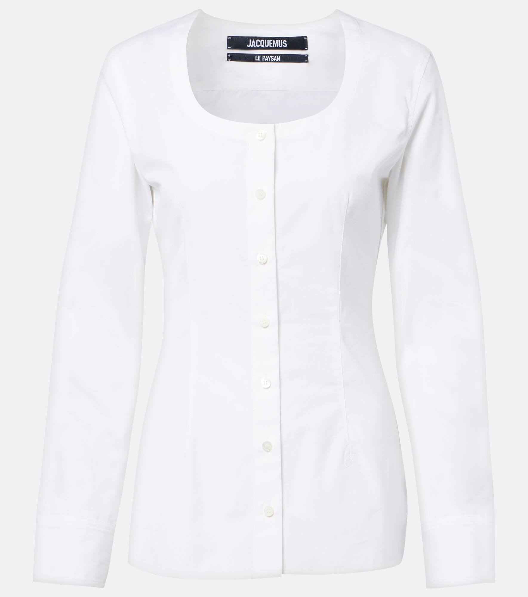 Jacquemus brings a characterful vision of French fashion to the design of every new collection. Crafted from pure cotton, this shirt falls just below the hip. Product Details - Material: 100% cotton - Care instructions: hand wash - Made in Bulgaria - Designer color name: White - Item color: white - Closure: buttoned front - Cuff: buttoned - Item number: P01076076 Size & Fit - True to size - Cinched waist - Non-stretchy fabric - Falls below the hip - The model seen in the picture is 178cm-5'10" and wearing a size FR 34