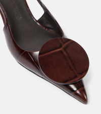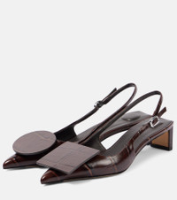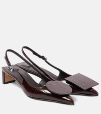 Duelo embellished croc-effect leather slingback pumps Chocolate