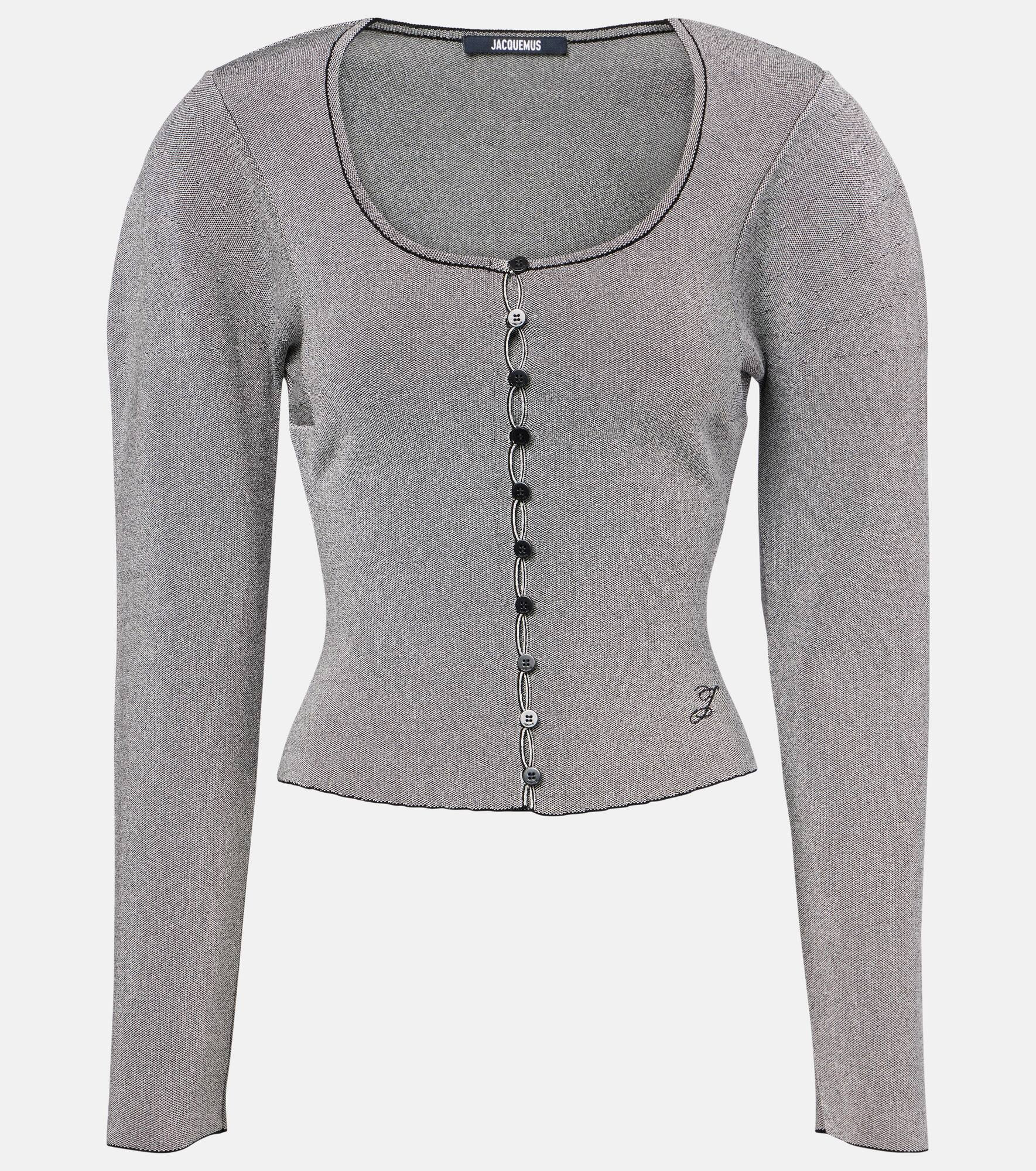 Jacquemus brings a characterful vision of French fashion to the design of every new collection. As its name suggests, the Evening cardigan is perfect for after-sunset outings. Product Details - Material: 88% viscose, 12% polyester - Care instructions: hand wash - Made in Bulgaria - Designer color name: Dark Grey - Item color: gray - Closure: buttoned front - Shoulder pads - Item number: P01077367 Size & Fit - True to size - Oversized shoulders - Shoulder pad inserts - Cinched waist - Stretchy fabric - Slightly cropped - The model seen in the picture is 178cm-5'10" and wearing a size FR 34