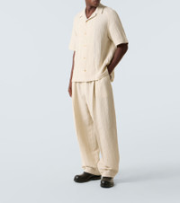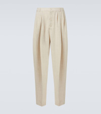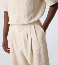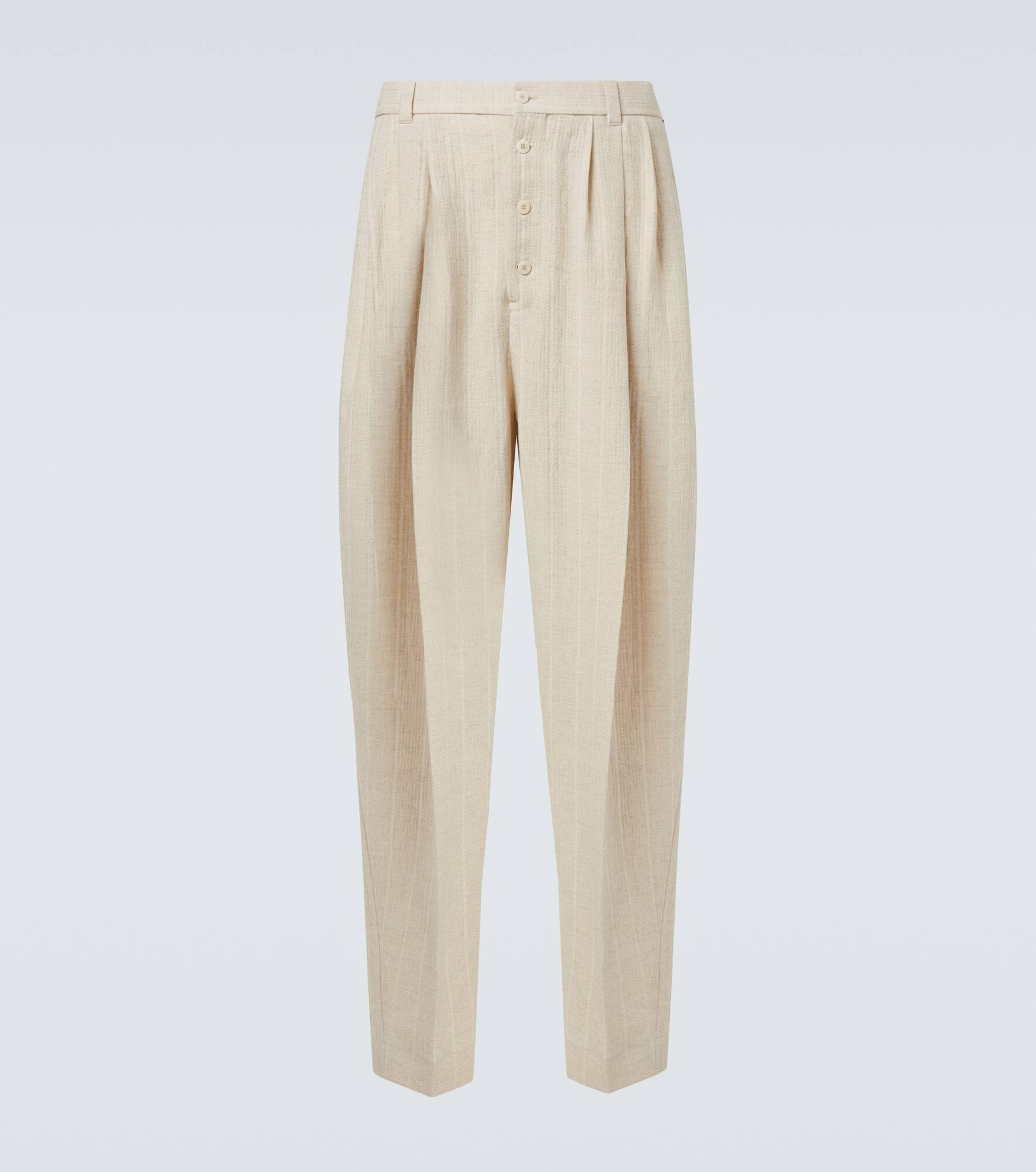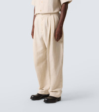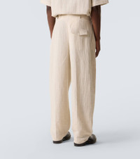 Jacquemus brings a characterful vision of French fashion to the design of every new collection. Coming in a textured cotton and linen blend, the Fernando pants are shaped into a wide-leg silhouette with curved legs and double pleats. Product Details - Material: 64% cotton, 36% linen - Care instructions: dry clean - Made in Bulgaria - Designer color name: Rib Knit LIght Beige - Item color: white - Lining: 55% cotton, 45% polyester - Closure: concealed buttoned front, bearer button - Pockets: side slit pockets, back pocket - Hem: finished - Belt loops - Item number: P01057800 Size & Fit - True to size - Non-stretchy fabric - Wide-leg - The model in the picture is 185cm-6'1" and wearing a size 50