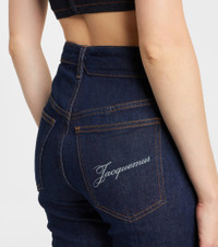 Jacquemus' Fernando De-Nimes capri jeans are designed with the brand's logo embroidery on the back pocket. The cropped silhouette reflects the brand’s playful approach to proportion and everyday structure. Product Details - Material: 98% cotton, 2% elastane - Care instructions: machine wash at 30 degrees - Made in Italy - Designer color name: Dark Navy - Item color: blue - Lining: 65% polyester, 35% cotton - Hardware color: silver - Closure: concealed button placket - Pockets: five pockets - Belt loops - Item number: P01077189 Size & Fit - Fits small to size - we recommend trying one size larger - Slightly stretchy fabric - Slim-leg - High-rise - The model seen in the picture is 178cm-5'10" and wearing a size 27