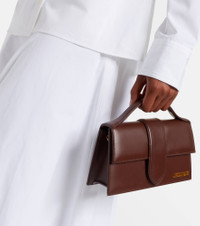 Jacquemus' Grand Bambino Small tote bag is made in Italy from leather with a magnetic fastening. The style features a structured top handle, leather shoulder strap, and internal slot pocket for compact essentials. Product Details - Material: calf leather - Lining: cotton - Made in Italy - Designer color name: Brown - Item color: brown - Closure: magnetic fastening - Top handle, Leather shoulder strap - Internal details: internal slot pocket - Item number: P01079899 Size & Fit - Height 13cm-5" - Width 23cm-9" - Depth 6.5cm-2.5" - Length of handles 24cm-9.5" - Adjustable shoulder strap - Max. length shoulder strap 120cm-47"