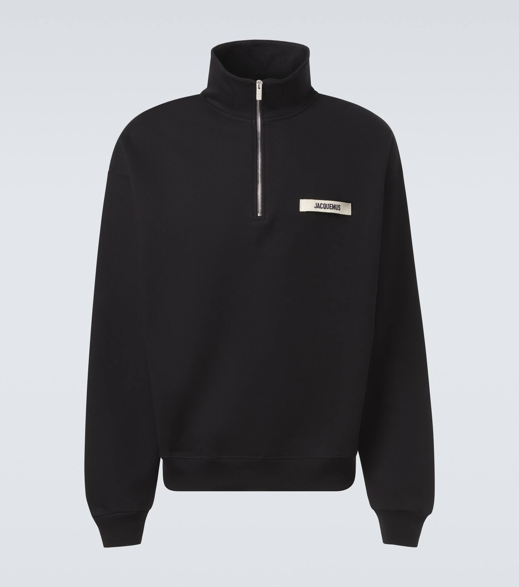 Jacquemus lends its distinctive Gros Grain signature to this sweatshirt. Crafted from cotton fleece, this style features a loose silhouette and a half zip-up closure. Product Details - Material: 100% cotton - Care instructions: machine wash at 30 degrees - Made in Portugal - Designer color name: Black - Item color: black - Item number: P01057794 Size & Fit - True to size - Dropped shoulders - Designed for a loose fit - Non-stretchy fabric - Falls to the hip - Height of model is 189cm-74.5" and wears a size L