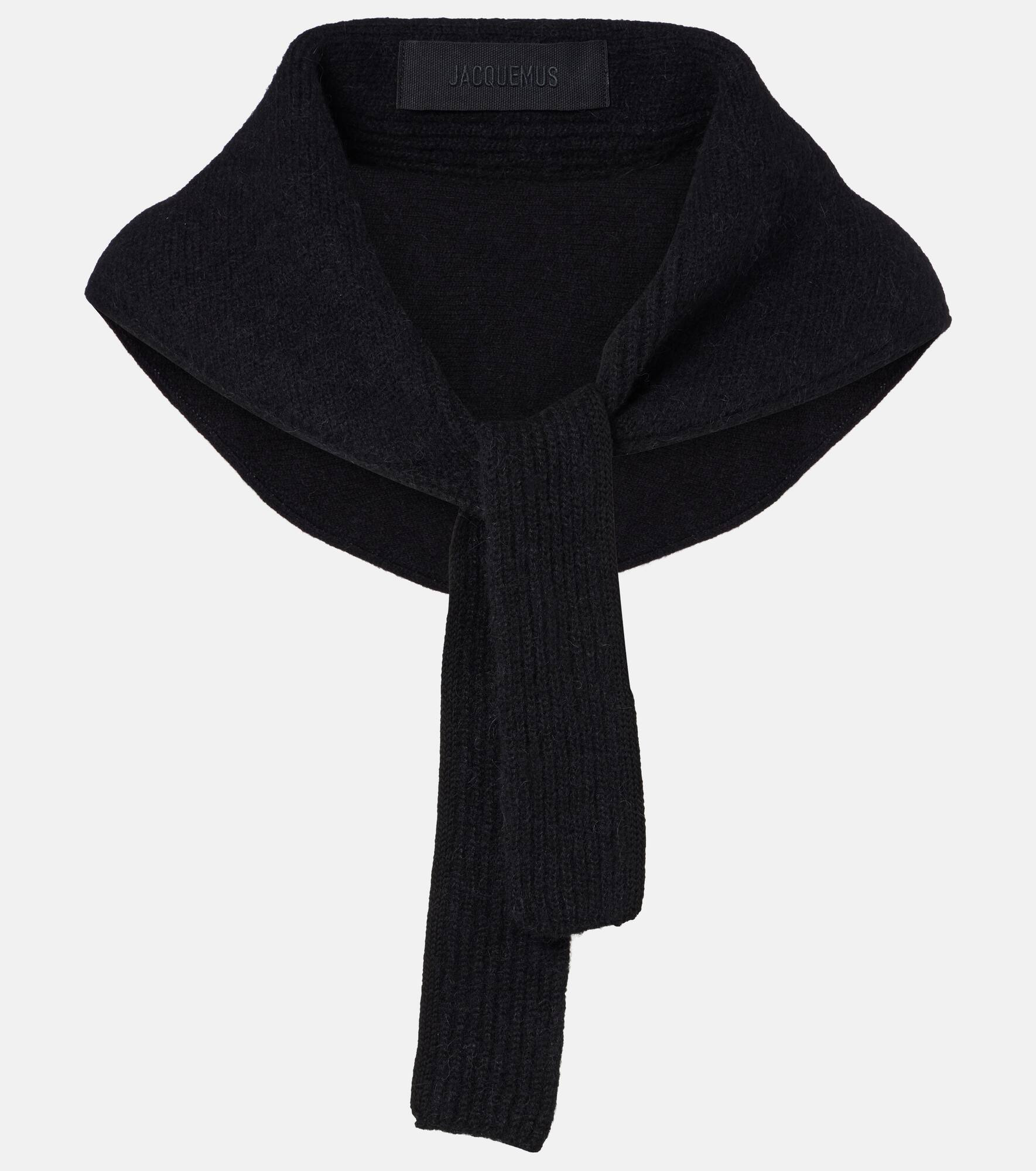 Jacquemus brings a characterful vision of French fashion to the design of every new collection. The Gros Grain knitted scarf is finished with a tone-on-tone embroidered logo at the back. Product Details - Material: 47% alpaca wool, 33% polyamide, 20% wool - Care instructions: hand wash - Made in Italy - Designer color name: Black - Item color: black - Item number: P01079916 Size & Fit - Length 150cm-59" - Width 44cm-17.5"