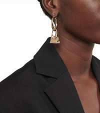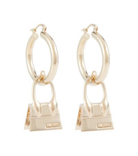 If you can't get enough of Jacquemus' signature It-bag, try adding these hoop earrings to your looks. This gold-toned brass pair is made for pierced ears, and features charming replications of one of the French label's most-loved accessories. Product Details - Closure: bar fastening - Made in Italy - Material: brass - For pierced ears - Designer color name: Light Gold - Item number: P00704956 Size & Fit - Length 6cm-2.5" - Diameter 2,9cm-1" - Max. width 0,3cm-0" - Pendant length 2,9cm-1" - Pendant width 1,9cm-0.5"