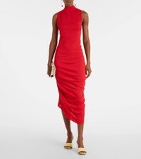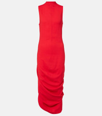 The J midi dress by Jacquemus exemplifies the elegance of French fashion with its clean silhouette and soft draping. The style is crafted from lightweight crepe, lending dynamism to the halterneck design. Product Details - Material: 97% viscose, 3% elastane - Care instructions: dry clean - Made in Romania - Designer color name: Red - Item color: red - Closure: invisible zipper - Collar: mockneck - Item number: P01076085 Size & Fit - True to size - Semi-sheer - Fitted - Non-stretchy fabric - The model seen in the picture is 178cm-5'10" and wearing a size FR 34