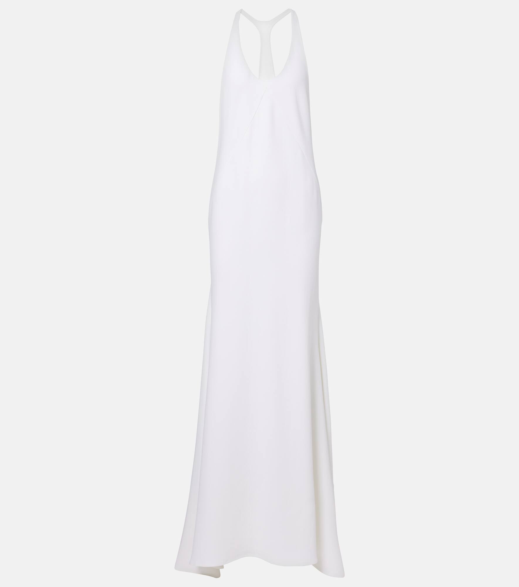 Jacquemus channels timeless elegance through minimalist design. Rendered in crisp white, this floor-skimming piece features a sleeveless silhouette and a scoop neckline—effortlessly refined in every detail. Product Details - Material: 65% viscose, 32% acetate, 3% elastane - Care instructions: dry clean - Made in Bulgaria - Designer color name: White - Item color: white - Lining: 100% polyester - Item number: P01077129 Size & Fit - True to size - Low back - Straight fit - Non-stretchy fabric - The model seen in the picture is 178cm-5'10" and wearing a size FR 34
