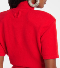 Showcasing understated elegance, this red minidress from Jacquemus is presented in a cozy silhouette. Made from a wool and cashmere blend, the design features a refined chestnut knit construction. Product Details - Material: 90% wool (merino wool), 10% cashmere - Care instructions: hand wash - Made in Portugal - Designer color name: Red - Item color: red - Shoulder pads - Collar: mockneck - Hem: ribbed - Item number: P01077374 Size & Fit - True to size - Oversized shoulders - Shoulder pad inserts - Fitted - Slightly stretchy fabric - The model seen in the picture is 178cm-5'10" and wearing a size FR 34
