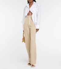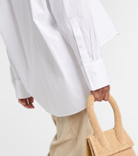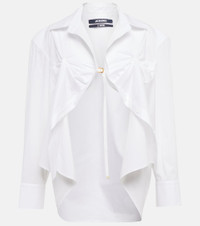 Jacquemus challenges conventional design proportions with the La chemise Amaro shirt. Crafted in France from poplin, the design features mother-of-pearl buttons and includes internal and external structuring to maintain its boxy shape and billowing front. Product Details - Closure: self-ties, button fastening - Care instructions: dry clean - Material: 2% elastane, 98% cotton - Buttoned cuffs - Designer color name: White - Made in France - Lining: partially lined, 3% elastane, 97% cotton - Item number: P00769071 Size & Fit - Fits large to size - we recommend trying one size smaller - Oversized shoulders - Dropped shoulders - Cinched waist - Underwired top - Lightweight material - The model seen in the picture is 178cm-5'10" and wearing a size FR 34