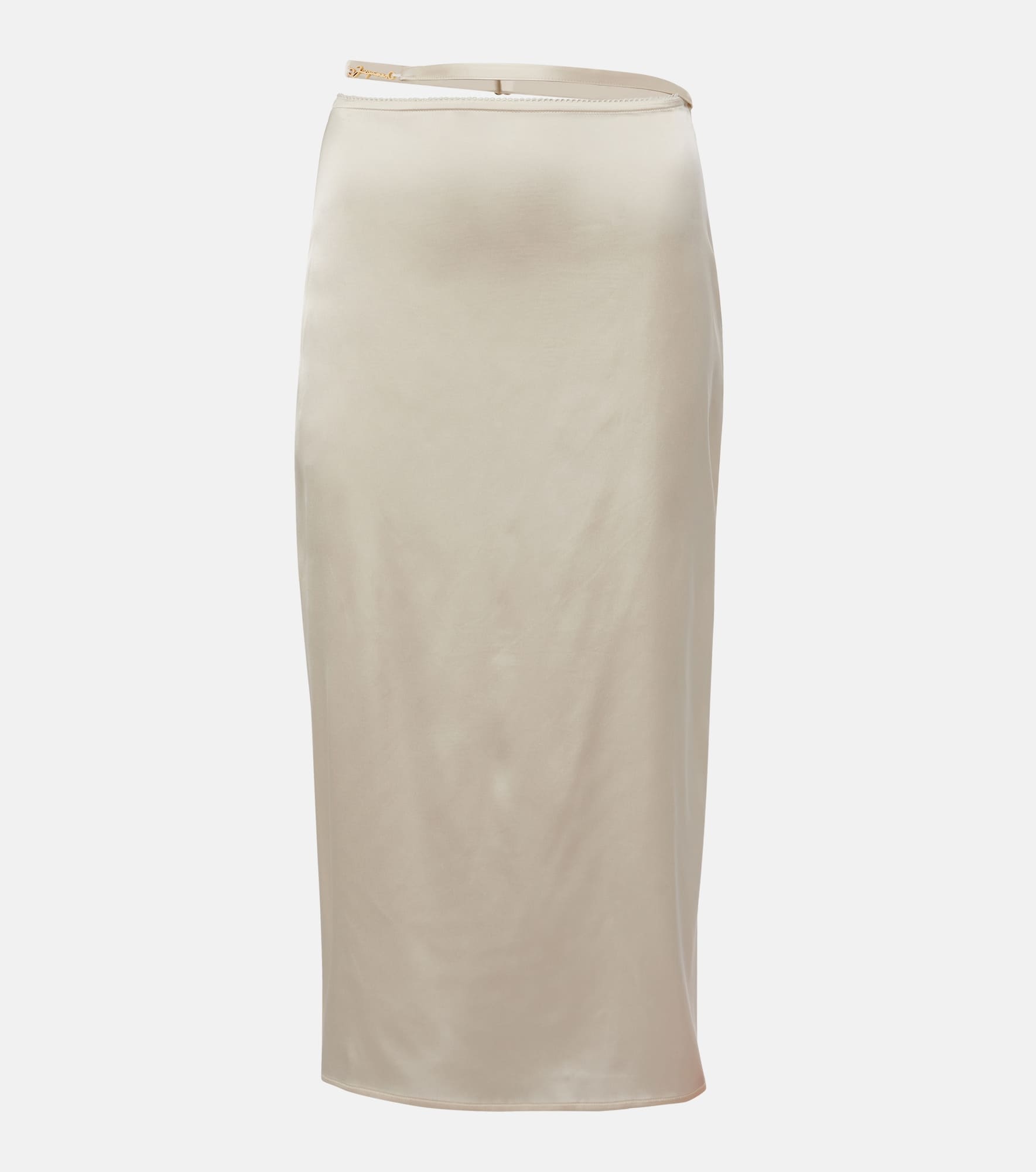 Product Details - Material: 96% viscose, 4% elastane - Care instructions: dry clean - Made in Bulgaria - Designer color name: Off White - Closure: zipped side, self-ties - Item number: P00965457 Size & Fit - True to size - Non-stretchy fabric - High-waisted - slit length 45,0cm-17.5" - The model seen in the picture is 178cm-5'10" and wearing a size FR 36
