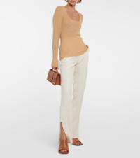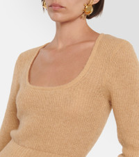 Jacquemus brings a characterful vision of French fashion to the design of every new collection. The La Maille Dao sweater has a scoop neck and a ribbed-knit finish made from an alpaca and mohair blend. Product Details - Material: 32% polyamide, 34% mohair, 34% alpaca wool - Care instructions: hand wash - Made in Portugal - Designer color name: Beige - Item number: P00846359 Size & Fit - True to size - Fitted - Stretchy fabric - Falls to the hip - The model seen in the picture is 178cm-5'10" and wearing a size FR 36