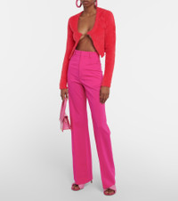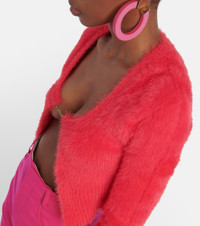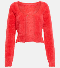 For an alluring addition to your sweater edit, look at the La Maille Neve Manches Longues cardigan from Jacquemus. Made from a fuzzy knit, this pink style is held together by a gold-toned logo. Product Details - Made in Italy - Care instructions: dry clean - Material: 98% polyamide, 2% elastane - Designer color name: Dark Pink - Item number: P00770609 Size & Fit - True to size - Straight fit - Mid-weight material - Cropped - The model seen in the picture is 178cm-5'10" and wearing a size FR 36