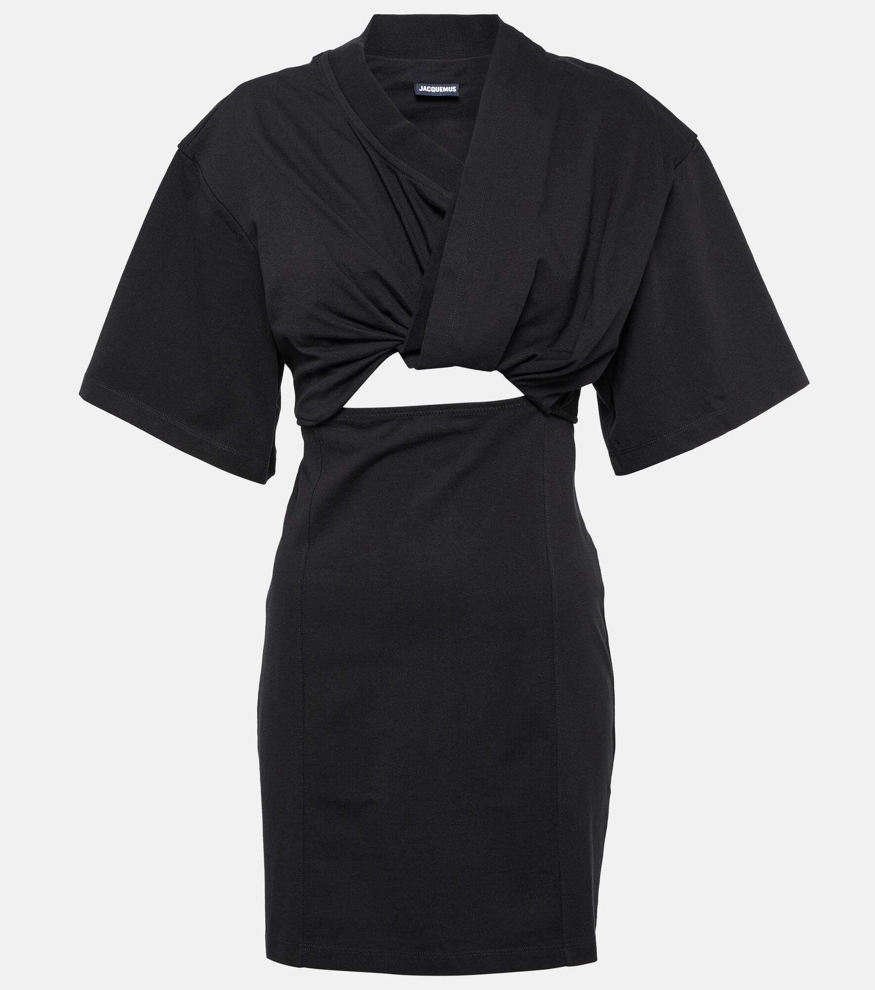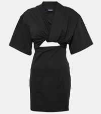 Jacquemus brings a characterful vision of French fashion to the design of every new collection. Made from black-hued cotton, the La Robe Bahia minidress is defined by its wrap detail across the chest, oversized short sleeves, and form-fitting skirt. Product Details - Made in Portugal - Material: 100% cotton - Closure: zipped back - Designer color name: Black - Care instructions: machine wash at 30 degrees - Item number: P00846189 Size & Fit - True to size - Dropped shoulders - Cinched waist - Mid-weight material - The model seen in the picture is 178cm-5'10" and wearing a size XS