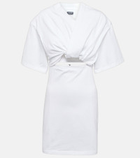 The La Robe Bahia minidress from Jacquemus is a favorite among the fashion set. It's famed for its sensual draped silhouette and low-hanging neckline – a modern take on the shirt dress. Product Details - Closure: zipper, hook fastening - Made in Portugal - Material: 100% cotton - Designer color name: White - Care instructions: machine wash at 30 degrees - Item number: P00846184 Size & Fit - True to size - Dropped shoulders - Cinched waist - Mid-weight material - The model seen in the picture is 178cm-5'10" and wearing a size XS