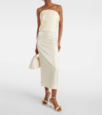 Product Details - Material: 68% viscose, 32% polyester - Care instructions: dry clean - Made in Portugal - Designer color name: Pale Yellow - Closure: zipped back, invisible zipper - Item number: P00905979 Size & Fit - Fits large to size - we recommend trying one size smaller - Internal boned corset for support - Cinched waist - Non-stretchy fabric - slit length 39cm-15.5" - The model seen in the picture is 178cm-5'10" and wearing a size FR 34