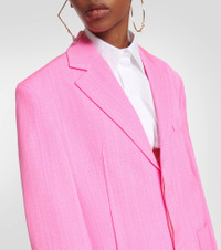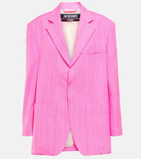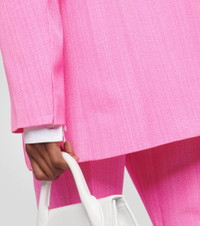 Incorporate contemporary sophistication into your office edit with a piece from Jacquemus’ “Le Raphia” collection - the La Veste d’Homme blazer. The oversized style is made from crêpe and features notched lapels and large pockets. Product Details - Pocket lining: 35% cotton, 65% polyester - Pockets: faux pockets - Care instructions: dry clean - Shoulder pads - Made in Romania - Lining: 48% acetate, 46% cotton, fully lined, 6% elastane - Material: 57% viscose, 43% silk - Designer color name: Pink - Closure: concealed buttoned front - Item number: P00768981 Size & Fit - True to size - Oversized shoulders - Shoulder pad inserts - Oversized - Mid-weight material - Falls below the hip - The model seen in the picture is 178cm-5'10" and wearing a size FR 36