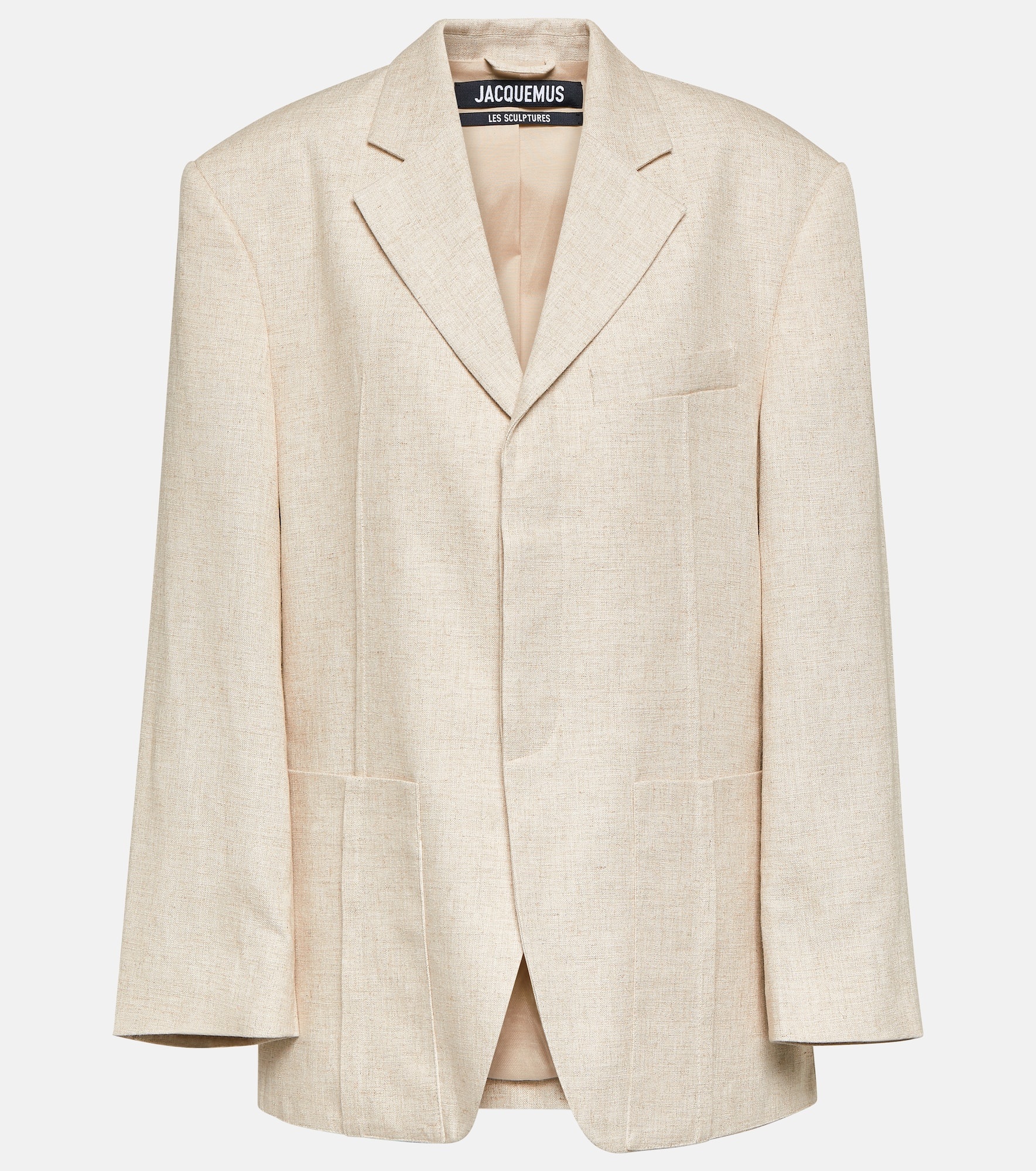 Product Details - Material: 70% viscose, 30% linen - Care instructions: dry clean - Made in Romania - Designer color name: Light Beige - Lining: 48% acetate, 46% cotton, 6% elastane - Closure: concealed buttoned front - Pockets: patch pockets, breast pocket - Item number: P00905949 Size & Fit - True to size - Oversized shoulders - Shoulder pad inserts - Designed for a loose fit - Non-stretchy fabric - Falls below the hip - The model seen in the picture is 178cm-5'10" and wearing a size FR 36
