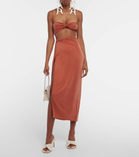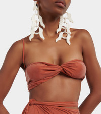 Jacquemus' Le Bandeau Espelho has a twisted center detail and a single shoulder strap that secures diagonally across the back. Made from jersey for a fitted silhouette, the style is finished with a side cutout. Product Details - Material: 93% cupro, 7% elastane - Care instructions: dry clean - Made in Portugal - Designer color name: Red - Item number: P00769165 Size & Fit - True to size - Fitted - Lightweight material - Stretchy fabric - Cropped - The model seen in the picture is 178cm-5'10" and wearing a size XS