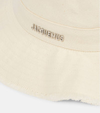Jacquemus' Le Bob Artichaut bucket hat features a wide stitched brim with frayed edges and an adjustable drawstring necktie. It's made from white cotton canvas and emblazoned with logo hardware. Product Details - Care instructions: hand wash - Material: 100% cotton - Fringed ends - Made in Bulgaria - Item number: P00626387 Size & Fit - Width of brim 8cm-3"