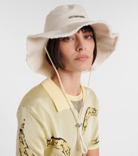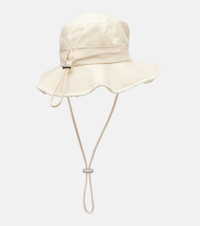 Set off on your adventure with Le Bob Artichaut bucket hat from Jacquemus. Made from cotton, this accessory features an adjustable strap and showcases a silver-toned logo plaque at the front for a distinctive touch. Product Details - Material: 100% cotton - Care instructions: hand wash - Made in Bulgaria - Designer color name: Off-White - Item color: white - Lining: 80% polyester, 20% cotton - Item number: P01079933 Size & Fit - Width of brim 7cm-3"