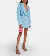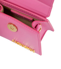 Gracing the arms of the fashion crowd, Jacquemus' Le Chiquito leather tote bag is the 'It' micro bag of the season. It's made from pink leather with golden hardware – including logo lettering at the corner. Product Details - Made in Spain - Color of fastening: gold - Designer color name: Pink - Detachable, adjustable shoulder strap - Internal details: fabric lining - Comes with dust bag - Closure: magnetic fastening - Material: cow leather - Item number: P00704871 Size & Fit - Height 9cm-3.5" - Min. width 10cm-4" - Max. width 12cm-4.5" - Min. depth 3cm-1" - Max. depth 6cm-2.5" - Min. length shoulder strap 98cm-38.5" - Max. length shoulder strap 116cm-45.5"
