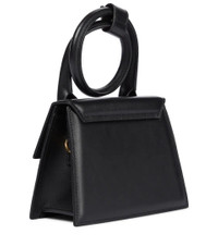 Featuring a distinctive elongated top handle that can be wound with a snap-button fastening, the black Noued tote bag is a new-season take on Jacquemus' iconic Chiquito design. This smooth leather style has a magnetic closure, logo-letter hardware, and an interior compartment to hold small essentials. Product Details - Made in Spain - Top handle, Detachable, adjustable shoulder strap - Designer color name: Black - Color of fastening: gold - Internal details: card slot, fabric lining - Comes with dust bag - Closure: snap-clasp fastening - Material: cow leather - Item number: P00583173 Size & Fit - Height 13cm-5" - Min. width 15cm-6" - Max. width 18cm-7" - Max. depth 7cm-3" - Min. length shoulder strap 98cm-38.5" - Max. length shoulder strap 116cm-45.5" - Suitable for small smartphones (e.g. iPhone 12 mini / Samsung Galaxy Z Flip 2)
