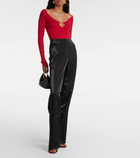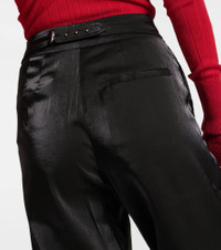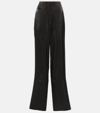 Product Details - Material: 69% viscose, 31% polyester - Care instructions: machine wash at 30 degrees - Made in Romania - Lining: 100% viscose - Pockets: side slit pockets, back pocket - Closure: zipper fly, button and hook fastenings - Belt loops - Item number: P00905960 Size & Fit - Fits large to size - we recommend trying one size smaller - Non-stretchy fabric - Wide-leg - High-waisted - The model seen in the picture is 178cm-5'10" and wearing a size FR 34