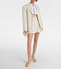 Product Details - Material: 70% viscose, 30% linen - Care instructions: dry clean - Made in Italy - Designer color name: Light Beige - Closure: zipper fly, button and hook fastenings - Pockets: back pockets - Belt loops - Item number: P00956791 Size & Fit - True to size - Adjustable at the waist - Non-stretchy fabric - Wide-leg - High-waisted - The model seen in the picture is 178cm-5'10" and wearing a size FR 36