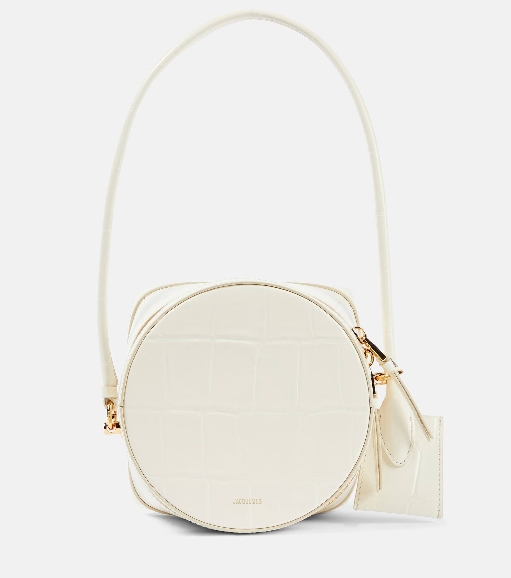 Product Details - Material: leather - Lining: fabric - Made in Italy - Designer color name: Light Ivory - Closure: two-way zipped top - Internal details: card slot - Shoulder strap - Includes: dust bag - Item number: P00887536 Size & Fit - Height 11cm-4.5" - Max. width 15,5cm-6" - Max. depth 15,5cm-6" - Length shoulder strap 60cm-23.5" - Suitable for large smartphones (e.g. iPhone 12 Pro Max / Samsung Galaxy A72, S21 Ultra/ Huawei P40 Pro, Mate 40 pro)